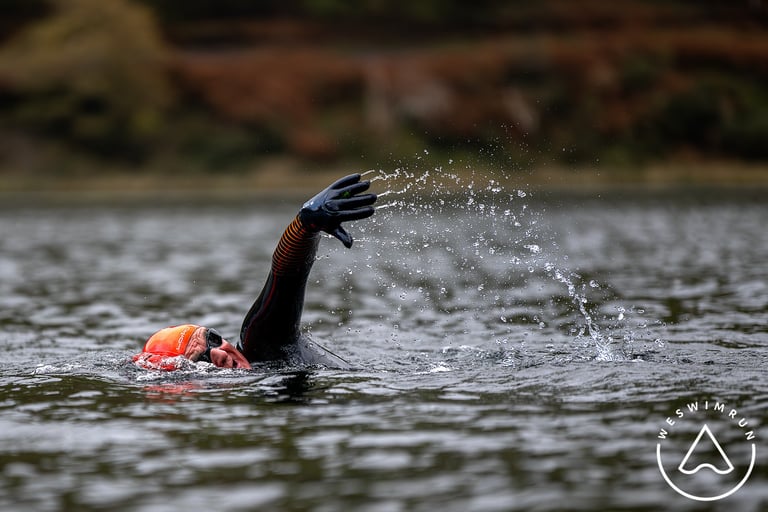 A race in Llyn Mywngil, Tal Y Llyn. A stunning glacial ribbon lake situated at the foot of one of Wales' most iconic mountains, Cadair Idris, in Snowdonia National Park.