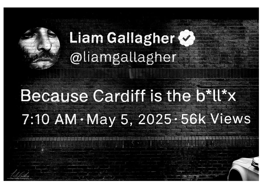 Documenting Cardiff’s Oasis Live ‘25 Mural There is a specific energy that takes over a city when it becomes the focal point of a global cultural moment. In the lead-up to the Oasis Live ’25 reunion tour, Cardiff didn’t just host the opening night at the Principality Stadium; it wore the event on its walls. As a photographer normally found documenting the rugged coastlines of Ceredigion or the grit of an endurance race in Eryri, I’m always drawn to how "place" and "identity" intersect. When I came across the Liam Gallagher mural on a nondescript car park wall in the capital, I saw more than just street art—I saw a masterclass in urban storytelling.