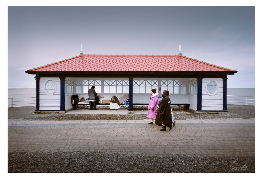 There is something about a Victorian promenade shelter. They’ve stood for over the years as a shared refuge from the elements—a place where paths cross for just a few minutes before the rain clears or the tide turns. I captured this quiet moment on the Aberystwyth seafront during a stormy afternoon on the Ceredigion coast. When visiting Mid Wales for the weekend, these shelters always seem to hold a certain weight and history.